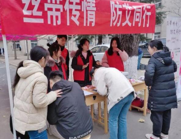 丝带传情,防艾同行!山东大学生志愿者宣传预防…
