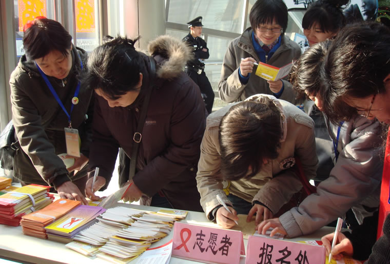 宣武区志愿者在填写报名表
