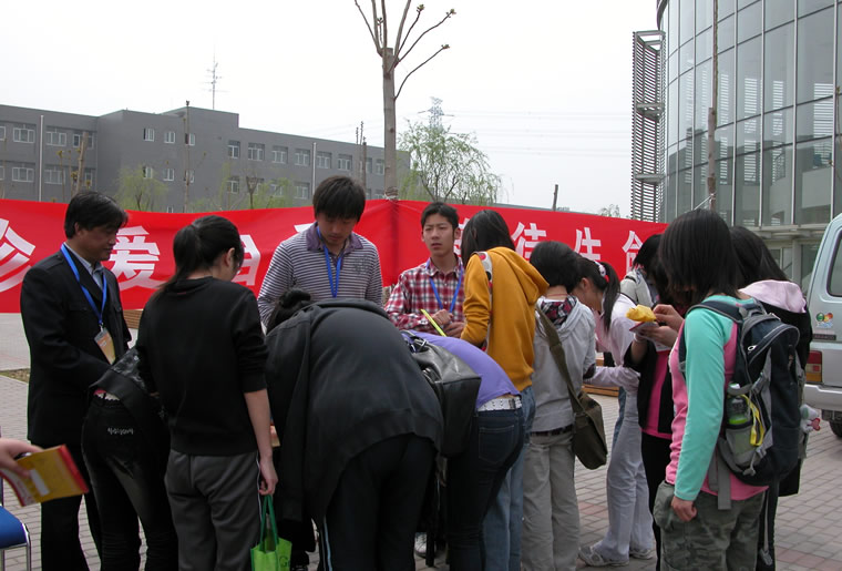 崇文区-向学生发放防治艾滋病宣传志愿者