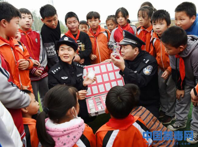 在课堂上,禁毒民警通过展示毒品仿真模型、发放禁毒宣传单等方式,向学生介绍毒品种类、危害及防范毒品技巧…