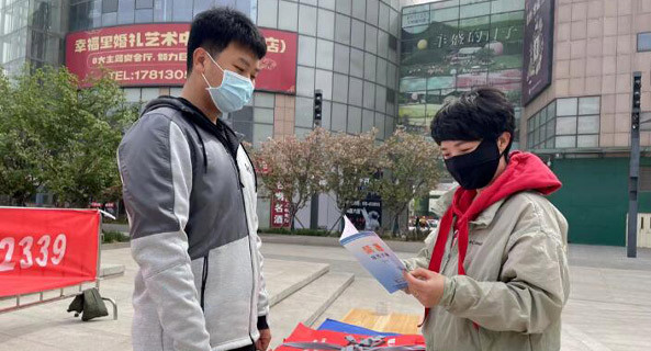 林校路街道禁毒办借助全民国家安全教育日契机开展禁毒宣传活动,禁毒社工在现场悬挂禁毒宣传横幅,向过往居…