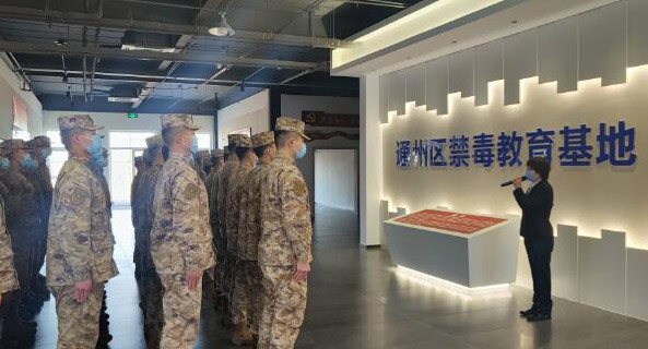通州区禁毒办组织驻通州某部80余名部队官兵走进通州区禁毒教育基地,携手开展禁毒与爱国主义教育活动。