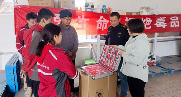 杨庄街道平安建设办公室在京东快递铁西林场营业网点开展禁毒宣传活动,禁毒社工结合仿真毒品模型、禁毒宣传…
