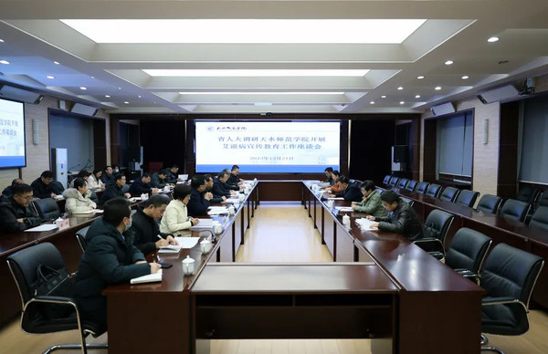 12月21日下午,省人大常委会党组成员、副主任俞成辉一行来校调研指导艾滋病宣传教育工作。市人大、市卫健委、市教育局相关负责人,校党委书记刘振奎,党委常委、副校长汪咏国及各职能部门、学院相关负责人参加调研。座谈会上,刘振奎对省人大调研组…