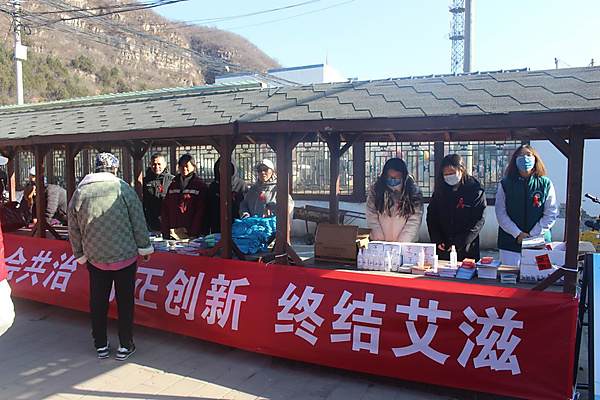 在第38个“世界艾滋病日”来临之际,门头沟区疾控中心联合妙峰山社区卫生服务中心、区妇幼保健院、石景山区艾滋病皮肤性病防治协会、北京同心相随志愿者发展中心共同在陇家庄大集开展了“社会共治 守正创新 终结艾滋”主题宣传活动。