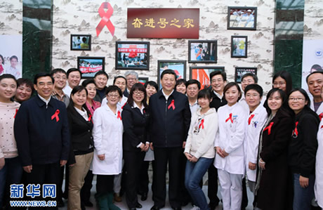 习近平在北京市参加世界艾滋病日…