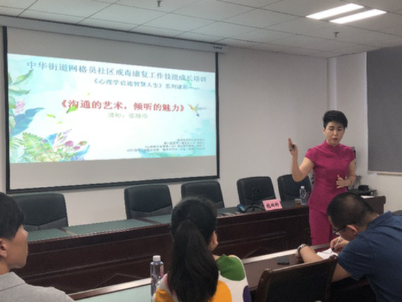 中国禁毒网讯 为了进一步强化社区戒毒、社区康复工作,提升社区网格员、禁毒专委的专业技能,2018年5月22日上午,福建省厦门市思明区中华街道办事处邀请了心理咨询机构的资深咨询师张琳珍,为到场的42名网格员、禁毒专委进行了首场《社区戒毒康复工作技能成长》培训。