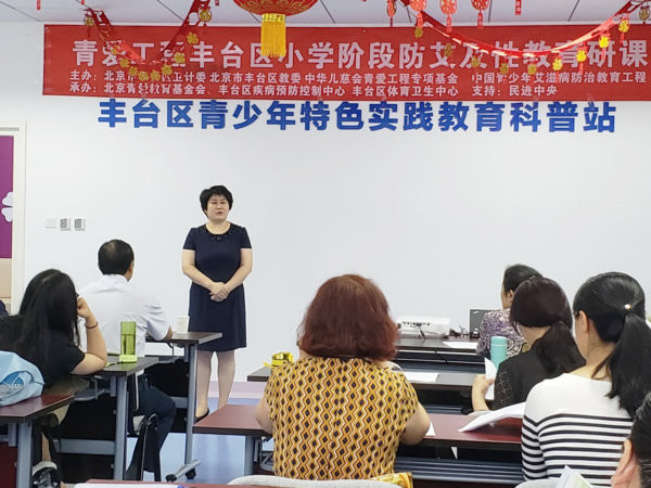 为进一步增强丰台区青少年防艾教育和性健康教育的师资力量,提升丰台区防艾教育和性健康教育的教学质量,2018年6月14日,北京市丰台区青爱小屋小学阶段防艾及性教育研课活动在北京市丰台区妇幼保健院新发地分院顺利开展。本次研课活动由北京市丰台区卫计委、北京市丰台区教委、中华儿慈会青爱工程专项基金、中国青少年艾滋病防治教育工程共同主办,北京青爱教育基金会、丰台区疾病预防控制中心、丰台区体育卫生中心联合承办,民进中央支持。丰台区疾控中心李洁主任、性病艾滋病防治科王欣心科长,丰台区体卫中心崔文建主任、学校卫生科李爱军科长、王蕊老师,丰台区妇幼保健院医务处魏红主任、妇科刘来庆主任,北京市青爱教育基金会邢海燕秘书长等人出席了本次活动。北京市青爱教育基金会项目部王玲玲副部长进行了主持。
