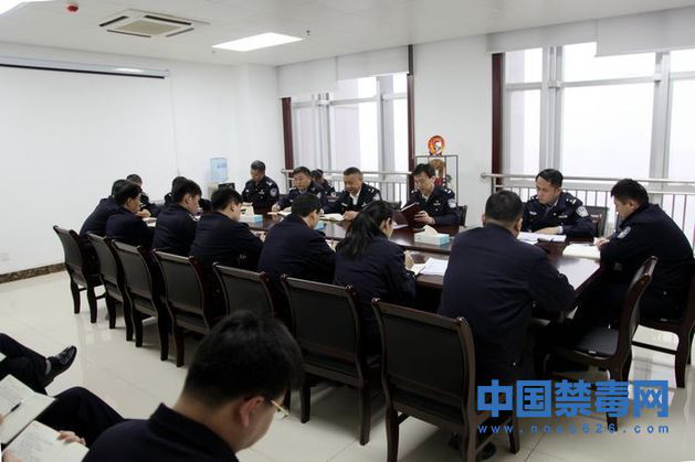 图为山东禁毒总队学习刘家义讲话精神。中国禁毒网发