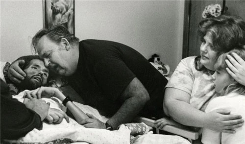 柯比眼神空洞,很难相信他现在有多绝望,1990年11月,柯比在拍摄完照片几天后也离世了,这些照片也被放到美国《生活》杂志社,一经刊登,全世界的人都非常震动。