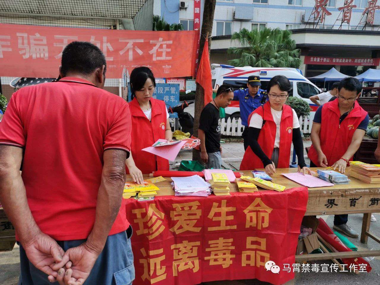2021年7月28日上午,兴安县界首镇利用圩日人流量大的优势,开展了对群众进行了预防溺水、防诈骗、预防艾滋病、远离毒品、珍爱生命知识宣传的活动。