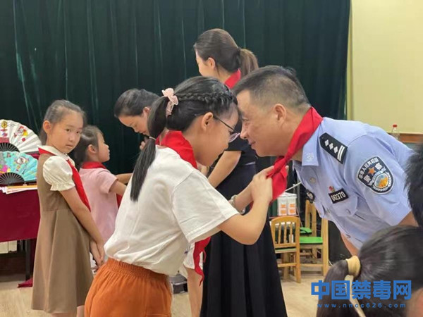 活动上,学生们各展所长,不仅展示了自行创作的主题字画扇面,进行了红领巾禁毒宣讲。禁毒大队长张林涛带来了一堂生动的禁毒课。同学们既学到了知识,又丰富了暑假生活。
