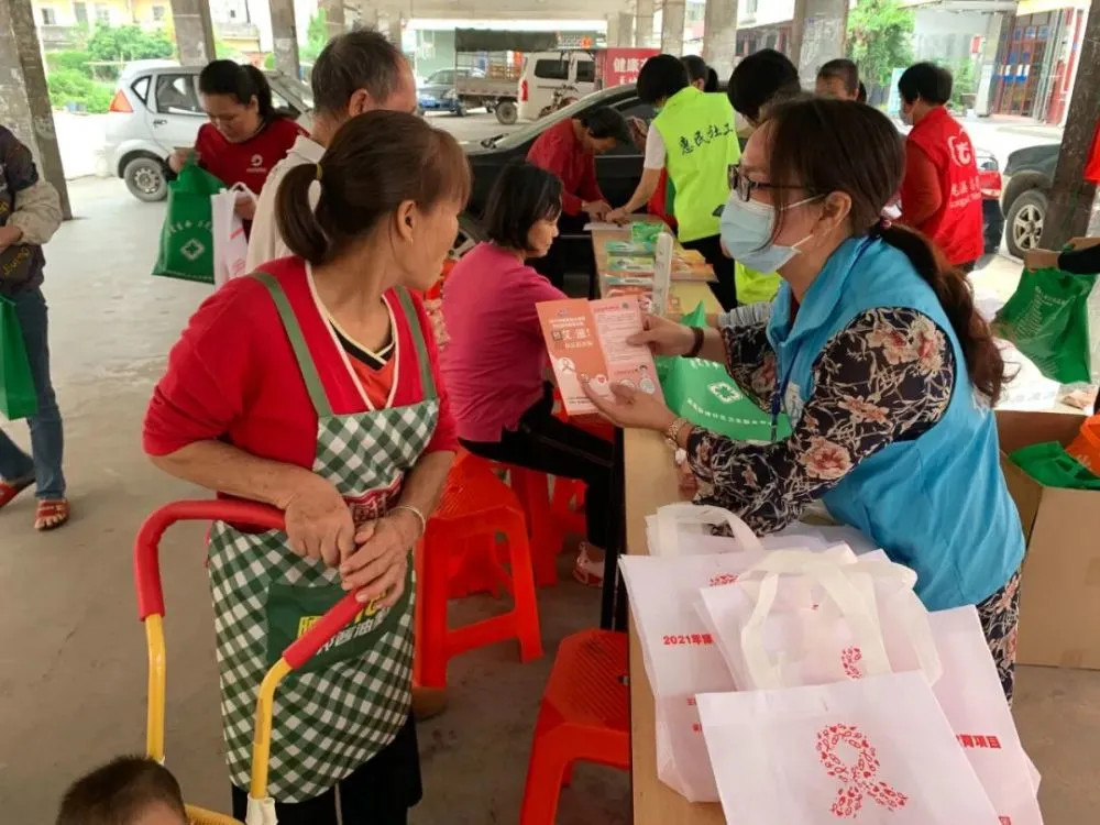 为进一步宣传普及艾滋病防治知识,提高群众的防艾意识,了解艾滋病的传播途径,正确理解和对待艾滋病。由博罗县疾病预防控制中心主办,惠州市惠民社会工作服务中心承办、博罗县榕城社会工作服务中心驻苏村社区“三社联动”社工站协办的2021年博罗县艾滋病宣传教育系列活动——“知艾防艾齐参与”龙溪街道苏村社区防艾宣传活动在博罗县龙溪街道苏村社区市场和苏村小学举行。