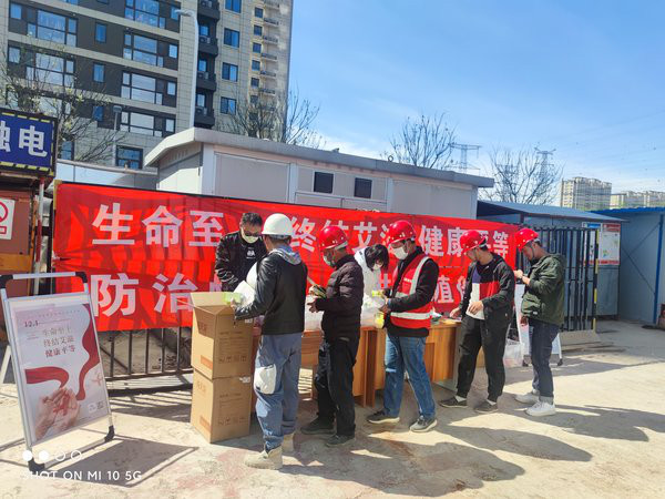 区疾控中心在翡翠长安项目工地开展建筑工人防治性病、艾滋病宣传活动