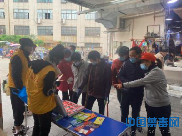 中国禁毒网讯 为进一步加强群众对艾滋病的认知,营造绿色无毒的社会环境。近日,广东省广州市番禺区禁毒办、南村镇禁毒办在侨兴市场开展以“远离毒品,预防艾滋病”为主题的禁毒防艾宣传活动。
