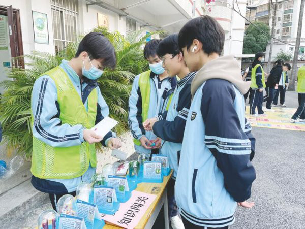 南宁市第四职业技术学校开展“无毒青春”禁毒防艾宣传活动,同学们通过仿真毒品、知识问答了解毒品。 (学校供图)