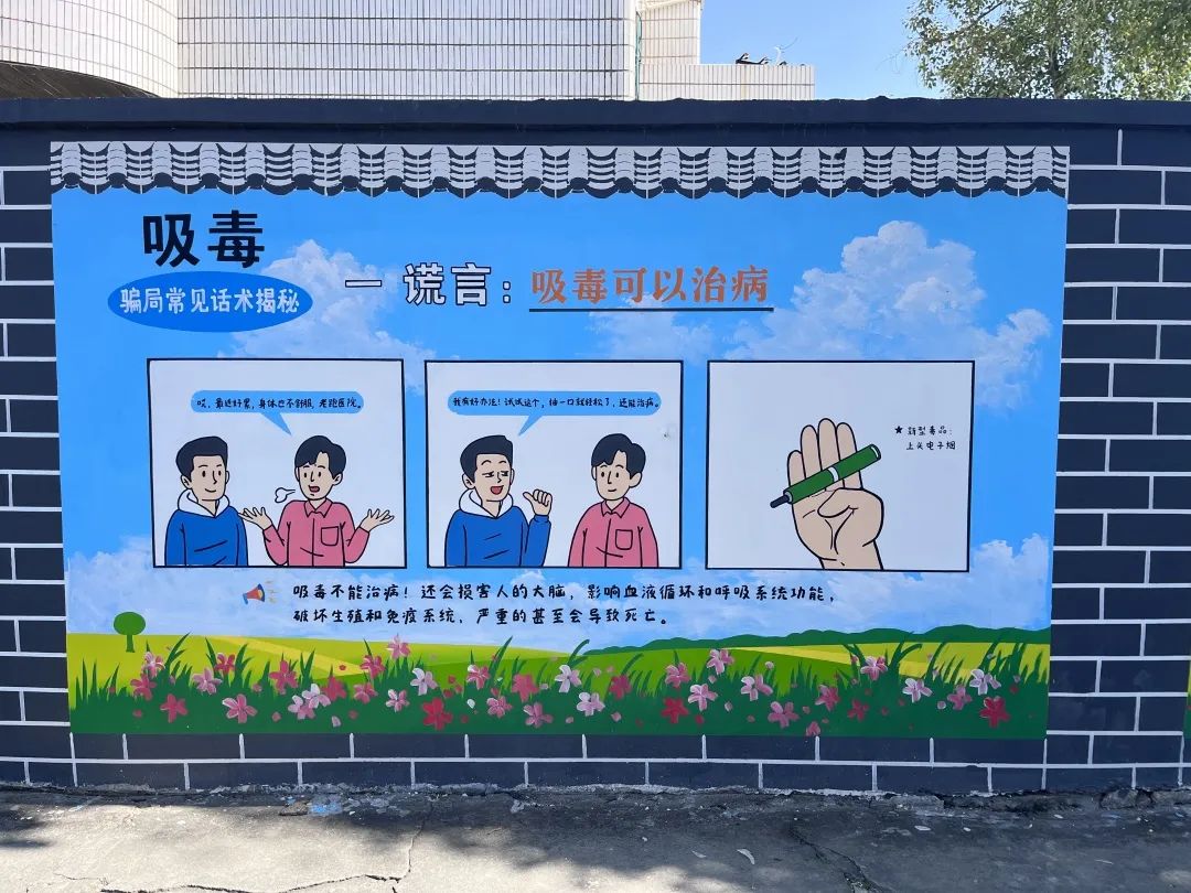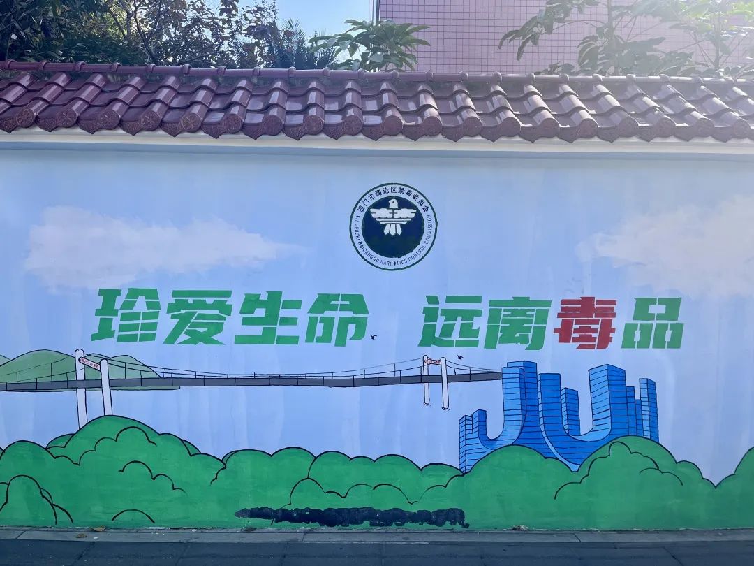 在海沧区过坂社区,同样设有极具地域特色的禁毒宣传文化墙,这些文化墙采用人工手绘展示出毒品的危害有效提高了社区居民识毒、防毒、拒毒的意识。