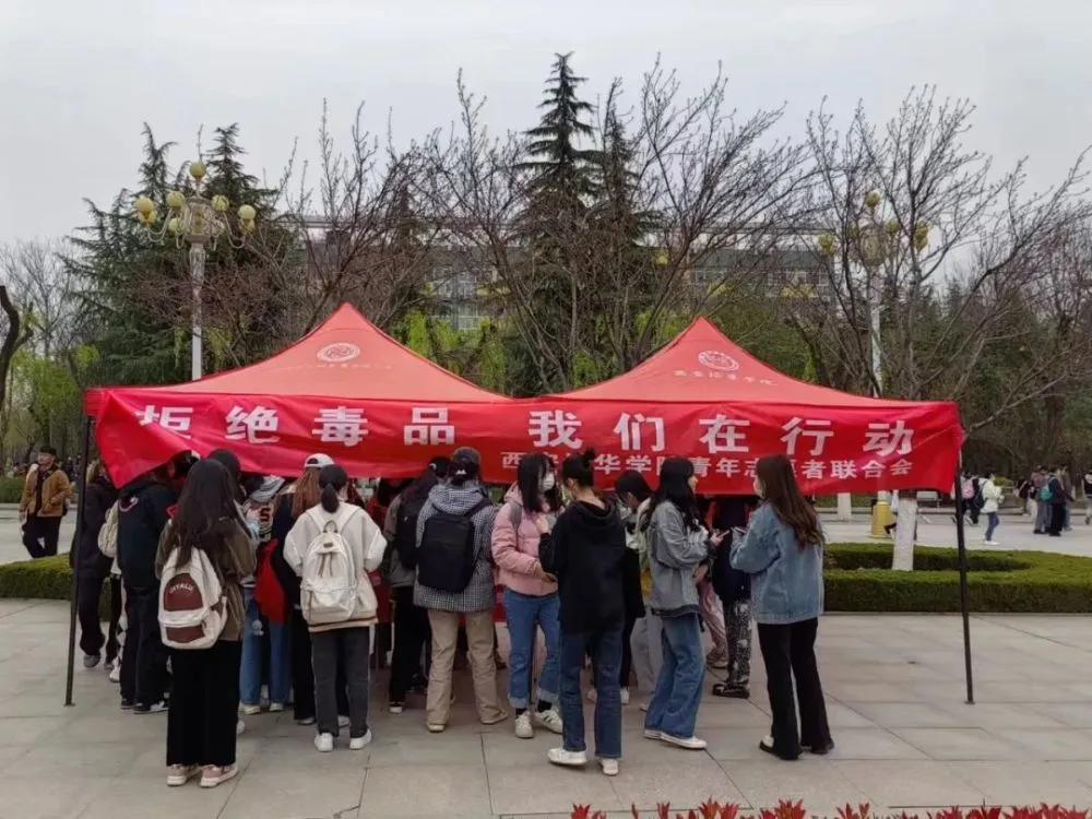 为进一步推进全校禁毒宣传教育,同时加强学生毒品预防教育工作,普及毒品小知识、禁毒常识,增强同学们自觉抵制毒品的意识。3月22日,西安培华学院青年志愿者联合会禁毒防艾队在综合楼西广场举办了以“拒绝毒品,我们在行动”为主题的宣传活动。志愿者通过设立禁毒宣传点、摆放识别毒品种类照片展板、发放禁毒宣传资料、展示毒品模型、现场讲解吸毒案例、发放宣传手册、进行“向毒品说不”横幅签名等活动,呼吁同学们珍爱生命,远离毒品。