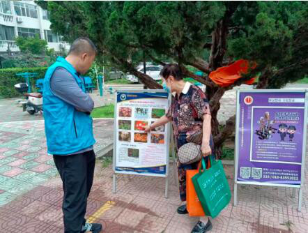 北七家镇蓬莱公寓社区禁毒专干及居委会工作人员在社区内组织开展以“珍爱生命 远离毒品”为主题的禁毒宣传活动,通过派发禁毒宣传资料、摆放禁毒知识展板等方式,向居民群众传达禁毒工作方面的政策法规以及防毒拒毒的基本知识,揭示吸毒对个人、家庭、社会的严重危害,发动群众积极参与禁毒斗争,教育引导群众同毒品违法犯罪行为作斗争,构筑了全民防范毒害侵袭的防护墙,有效增强了广大群众的法制观念和禁毒意识。
