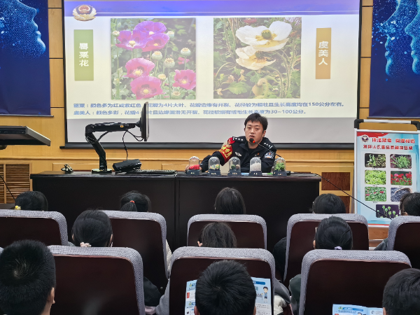 活动现场,派驻警察从毒品的种类、危害和中学生如何防毒以及禁毒相关法律法规等四个方面进行了详细的讲解,并通过展示毒品仿真模型,发放禁毒宣传册等多种形式,引导同学们树立正确的人生观,提高识毒、防毒、拒毒意识。派驻警察还特别提醒学生们如何防范伪装成奶茶、跳跳糖等饮料、零食样式的新型毒品,提升学生们对新型毒品的甄别能力,并且鼓励学生们做禁毒工作的小宣传员,将所学禁毒知识宣传给家人,与家人一同拒绝毒品、珍爱生命,携手共建和谐家庭。