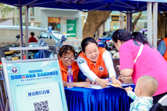 本次宣传活动,形势多样,内容丰富多彩。现场设置了禁毒防艾学习区、禁毒VR体验、禁毒防艾宣传片区、反邪反走私区摸石头过河活动等10多个游戏互动项目。在游戏互动环节,禁毒社工们将禁毒知识元素融入游戏中,将禁毒知识趣味化,让居民在玩中学,学中记。