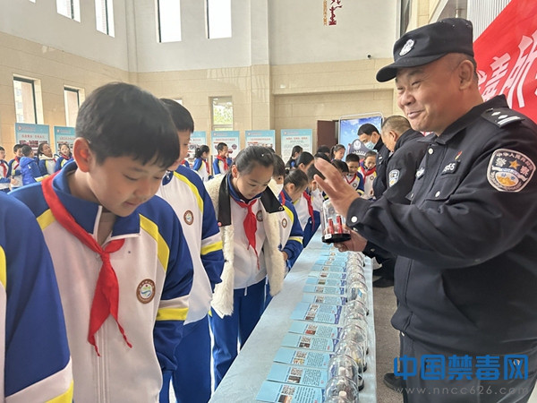 活动期间,活动中,禁毒民警通过发放禁毒宣传材料、摆放禁毒展板、展示毒品仿真模型等方式,向学生讲解毒品种类、危害以及青少年如何预防毒品危害等知识。同时通过讲解真实案例,引导学生提高思想认识,将所学的禁毒知识向朋友、家人宣传普及,筑牢防毒、禁毒的思想防线。