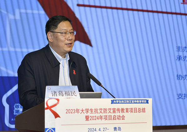 诸葛福民在致辞中表示,艾滋病宣传教育是大学生健康教育的重要组成部分,学校高度重视在大学生群体中开展此项工作,构建了“学校主导、社团引领、学生参与”的宣传教育模式。学校将以本次会议召开为契机,持续强化体制机制建设,不断丰富宣传教育内容和形式,努力营造全校上下共同参与大学生抗艾防艾宣传教育工作的浓厚氛围,持续提升学生安全防护意识和健康生活理念。