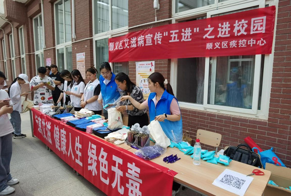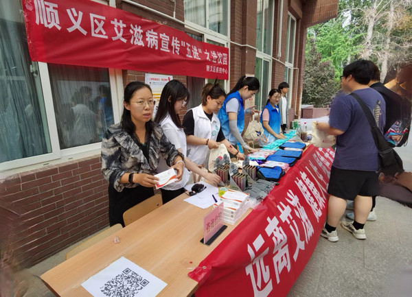 为提高顺义区青年学生对艾滋病的了解,普及艾滋病预防知识,5月29日,顺义区疾病预防控制中心联合北京工业大学耿丹学院青年志愿者协会组织开展“预防艾滋病,你我爱心共接力”防艾地推活动。
