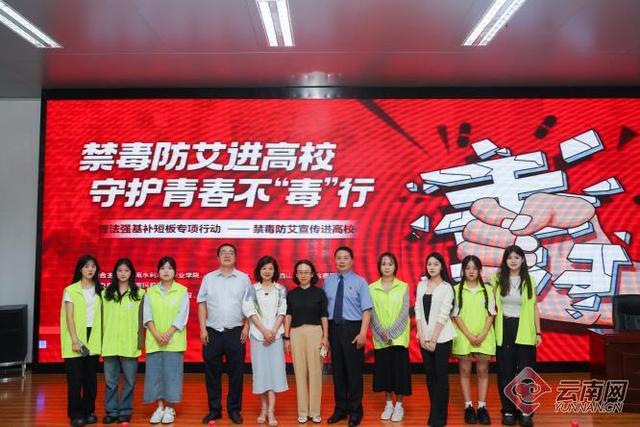 为深入推进大学生禁毒防艾教育,提高大学生群体的自我保护意识及识毒、拒毒和防艾能力,6月18日晚,由云南水利水电职业学院、云南法制报社、昆明市西山区人民检察院、云南玛莉亚医院共同参与主办的“禁毒防艾进高校,守护青春不‘毒’行”公益宣传活动在云南水利水电职业学院富民校区举行。