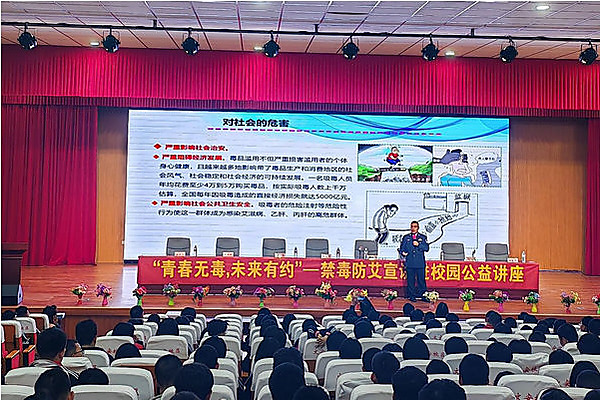 图为禁毒防艾公益讲座现场。中国禁毒网发 中国禁毒网讯 为进一步强化青少年毒品预防教育,提高学生识毒、防毒、拒毒意识,近日,山西省大同市天镇县天镇初级学校文安校区举办以“青春无毒未来有约”为主题的禁毒防艾公益讲座。