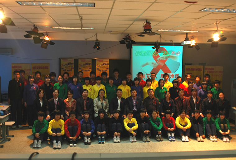 崇文区中学生争当艾滋病志愿者宣誓仪式