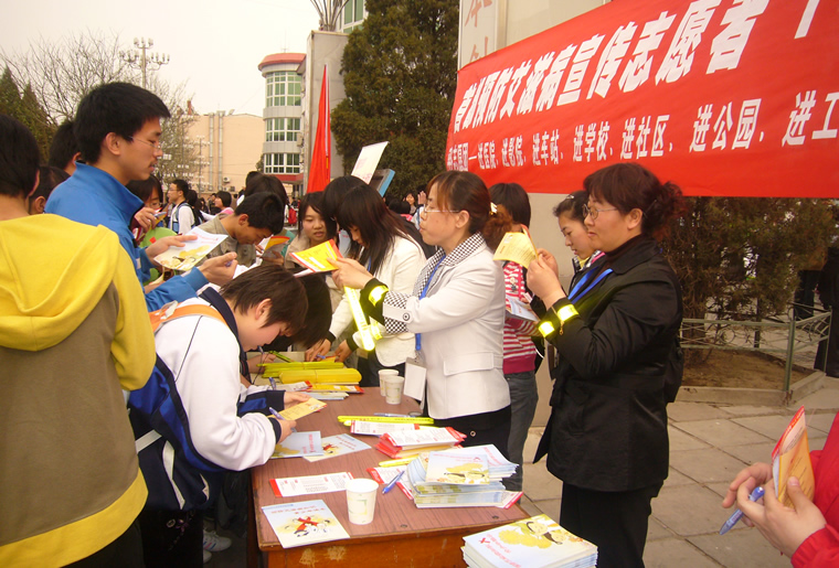 崇文区-向学生发放防治艾滋病宣传志愿者