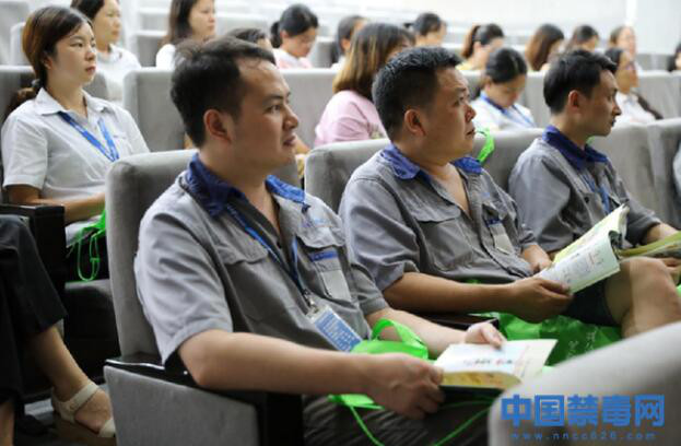 讲座中,禁毒社工通过播放禁毒宣传PPT、视频等形式,向企业职工介绍毒品种类、危害及禁毒相关法律政策。同…