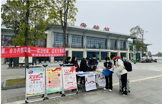 为提高青神县外出务工人员艾滋病、性病和丙肝防治知识知晓率,2月26日,青神县疾控中心在高铁站开展艾滋病、性病和丙肝防治宣传活动。