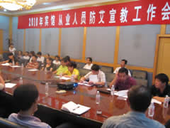 为贯彻落实《大兴区艾滋病综合防治示范区工作方案》的有关要求,提高流动人群的防病意识,营造全社会共同防艾的良好氛围,2010年9月8日,在大兴区旅游局的大力支持协助下,大兴区疾控中心在大兴宾馆召开 “2010年宾馆从业人员防艾宣教工作会”,大兴区宾馆、饭店、旅游景点、旅行社等单位的50余名从业人员参加了培训。