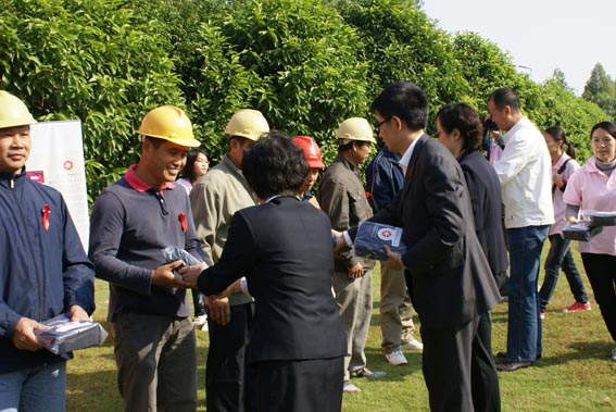 启动仪式结束后,由香江集团员工和广东女子职业技术学院在校大学生组成的三十多名香江义工在工地、城中村等农民工聚集地派发了广东地区首批近千个健康包,每个健康包包括健康知识手册以及安全套、口罩、创可贴、香皂等卫生工具。
