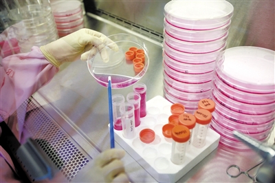 工作人员在进行细胞培养。