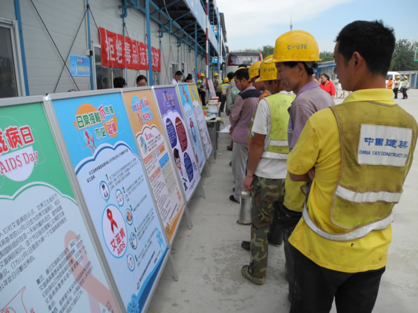 活动通过现场咨询、免费HIV抗体筛查、发放防艾禁毒宣传物品等形式向广大建筑工人进行了禁毒、性病艾滋病防治知识的宣传。活动现场气氛热烈,共发放防艾知识宣传材料3种2000余份,防艾宣传扑克500余副,毛巾500条,透明皂500份,安全套2000只。