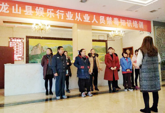 为进一步规范娱乐场所经营管理,有效防范新型毒品在娱乐场所的滋生,近日湖南省龙山县禁毒办对该县最大娱乐场所从业人员进行了禁毒知识宣传教育培训。