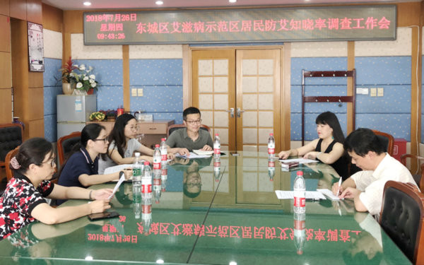 为了解艾滋病综合防治干预工作进展情况,保障第三轮示范区工作的顺利完成,我中心性艾科于2018年8月3日召开了居民防艾知识知晓率抽样调查工作培训会。会议由性艾科田飞科长主持,东城卫计委周佩佳、疾控中心刘晶磊副主任、性艾科王颖慧及辖区东华门、体育馆路、东花市、交道口街道办事处文教科负责人共8人参加。会上由田飞科长向辖区街道介绍了本次调查工作的意义,由王颖慧介绍了调查工作的要求和流程,并和各街道办事处负责人共同研讨了调查工作中的细节问题。力争通过本次调查,真实客观反映出辖区居民防艾知识知晓情况,为示范区创建工作的完美收官做好准备。