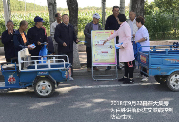 为进一步提高辖区居民防治性病艾滋病意识,普及艾滋病基本防治知识,遏制艾滋病的流行和传播,9月27日,北京市顺义区大孙各庄社区卫生服务中心将性病艾滋病防控知识送到田间地头。