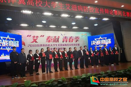 承德医学院护理学院焦聪聪、基础医学院赵远卉、肖安迪代表承德赛区参加此次辩论赛。与全省各地市的其他13支代表队围绕“艾滋病主要是医学问题还是社会问题”“艾滋病的宣传教育应该侧重危害警示还是社会关怀”“防治艾滋病主要依靠政府力量还是社会力量”三个辩题展开了激烈辩论。承德医学院代表队表现优异,获得了省辩论赛第二名 “优胜奖”的好成绩,并将与衡水学院、河北农业大学、河北工程大学共同代表河北省参加京津冀高校辩论赛。