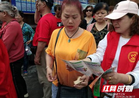 志愿者在景区发送禁毒宣传资料。
