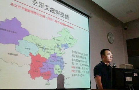 首先通州区性艾所负责人李震,向学生们阐述了艾滋病相关知识,包括它的历史、传播方式、疾病分期、治疗及预防等方面,并简单介绍了全国及北京市的HIV疫情形势,警示同学们,大学生是HIV新发感染的重点人群之一,希望同学们增强自我保护意识,树立正确的价值观。