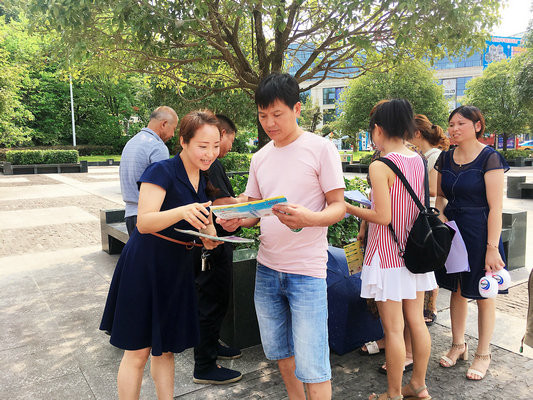四川新闻网泸州9月4日讯(刘贵芳 文/图)9月2日,又是一个艳阳天。东升街道联合棉花坡卫生院的医生们在汽车广场宣传艾滋病防治知识和病媒生物防制知识。