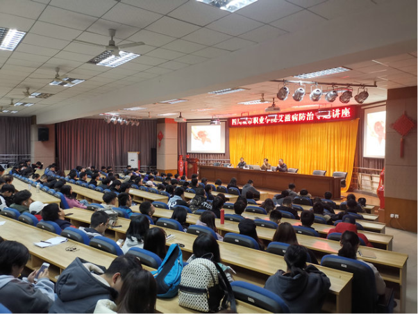 “合力抗艾,共担责任,共享未来”。为了加强预防艾滋病宣传教育,增强师生预防艾滋病的意识和能力,12月3日,在第31个世界艾滋病日之际,四川城市职业学院举办了艾滋病防治专题讲座。专题讲座邀请到了成都市公共卫生临床中心感染科主任医师蔡琳教授作为主讲人,讲座的主题是“合力抗艾,共担责任,共享未来”。蔡琳结合自己多年的实际工作经验,详细讲解艾滋病病理知识、传播途径、流行具备条件、临床症状和特征、严重危害、预防控制措施以及自愿咨询与检测等方面的知识。
