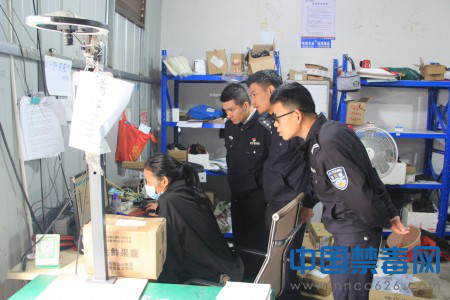 图为民警深入辖区寄递物流营业网点进行禁毒专项检查。中国禁毒网发