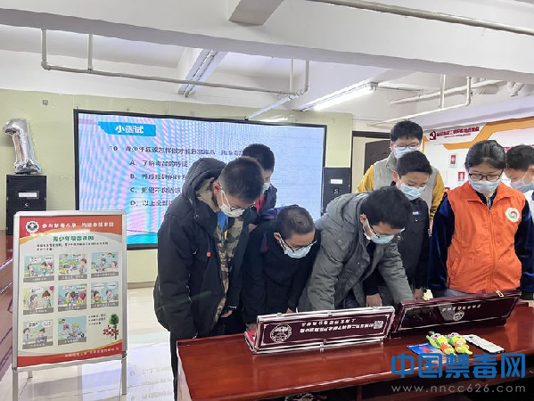 活动中,禁毒社工通过过PPT宣讲,利用毒品仿真模型展示、视频资料播放,结合实际案例深入浅出地向青少年志愿者介绍毒品的相关知识。在的细致讲解下,青少年禁毒志愿者深入了解各类毒品的属性、成瘾机制、危害和预防知识等,对伪装成各类食品、饮料的新型毒品有了更直观的认识。