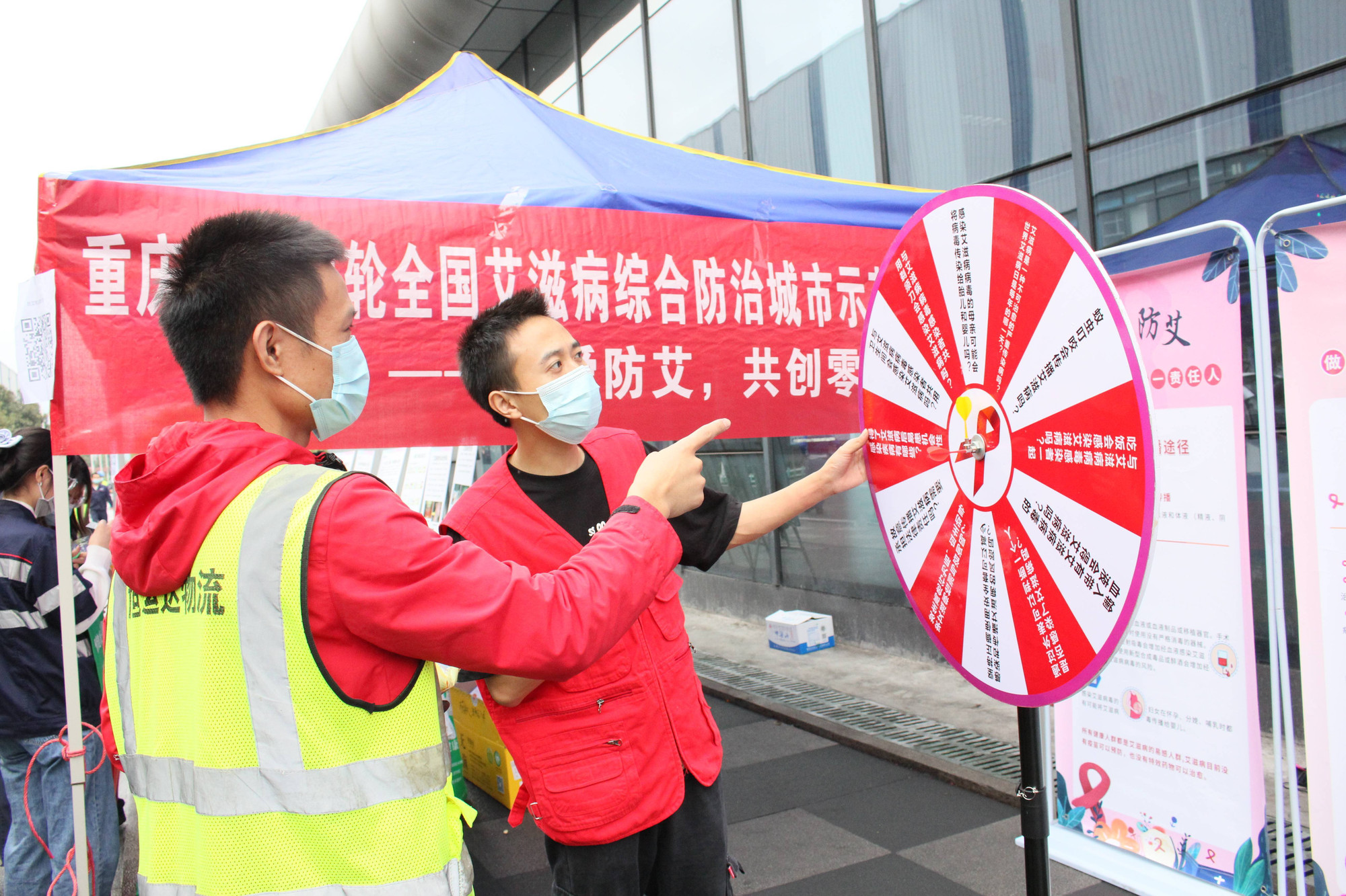 现场,日新志愿者搭建物料丰富的防艾展区及HIV初筛检测台,为企业职工和工友提供免费初筛检测,并邀请防艾专家向企业职工和广大工友开展防艾微宣讲,普及艾滋病的致病原理、传播媒介及预防方式等。此外,日新志愿者还通过互动游戏的方式寓教于乐,呼吁大家远离高危行为,树立正确的性道德和性观念。