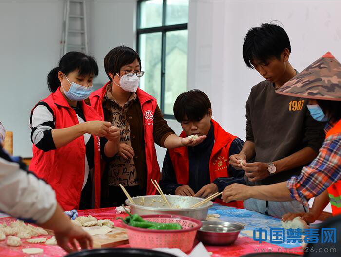 图为工作人员为涉毒人员包饺子。中国禁毒网发
